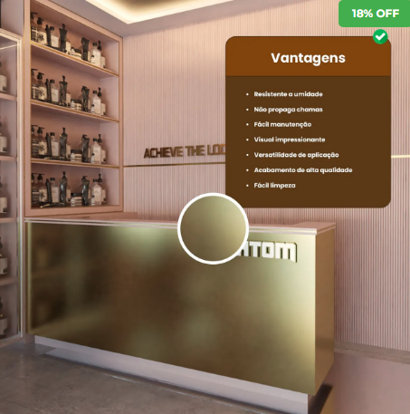 O Revestimento Efeito Metálico Espelhado Dourado Interno 2,90m x 1,22m foi desenvolvido para transformar ambientes com sofisticação, resistência e modernidade.